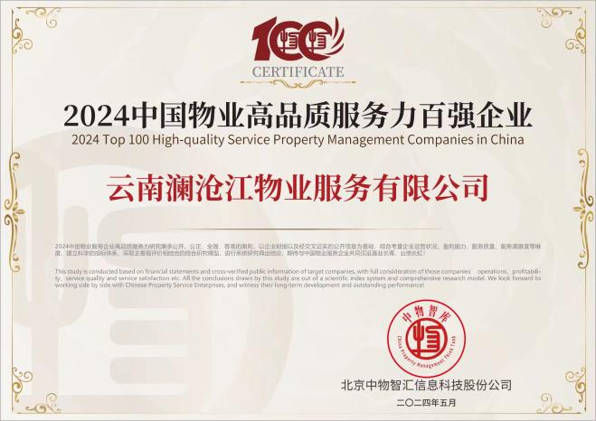 2024中国物业高品质服务力百强企业